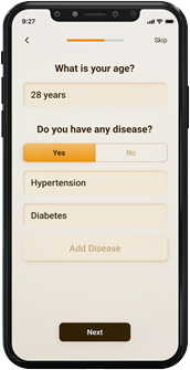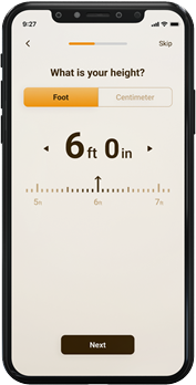 We give option to User to enter their Weight, Height, as well Age in very easy way. We will provide user a very user friendly app which every age group can use easily.